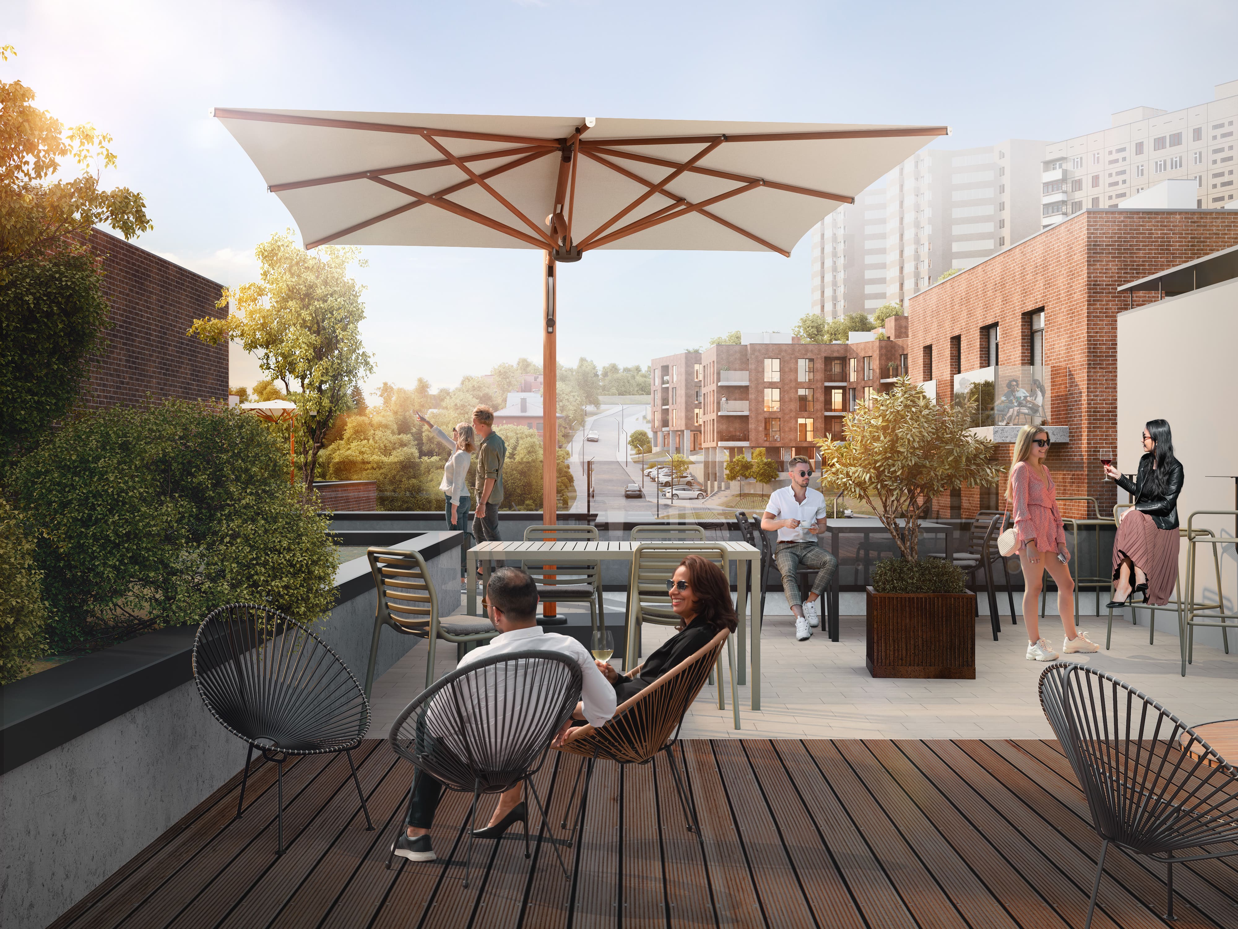 У багатьох квартирах передбачені великі відкриті тераси, а також експлуатовані покрівлі з можливістю облаштування лаунж-зон, міні-садів або BBQ. Це простір, де можна жити на повну — не виходячи з дому.
